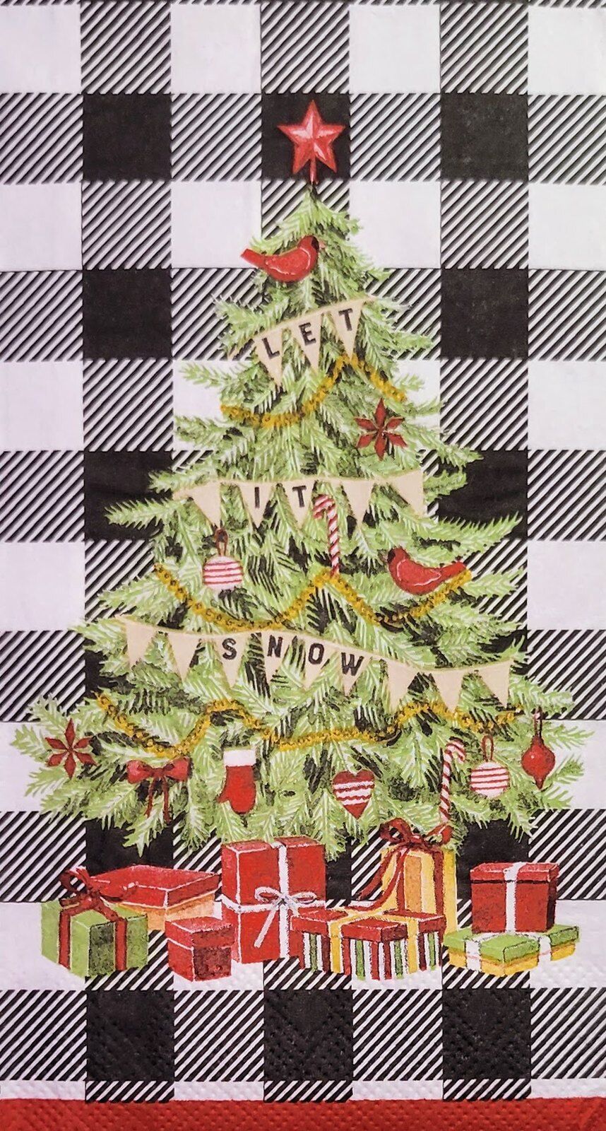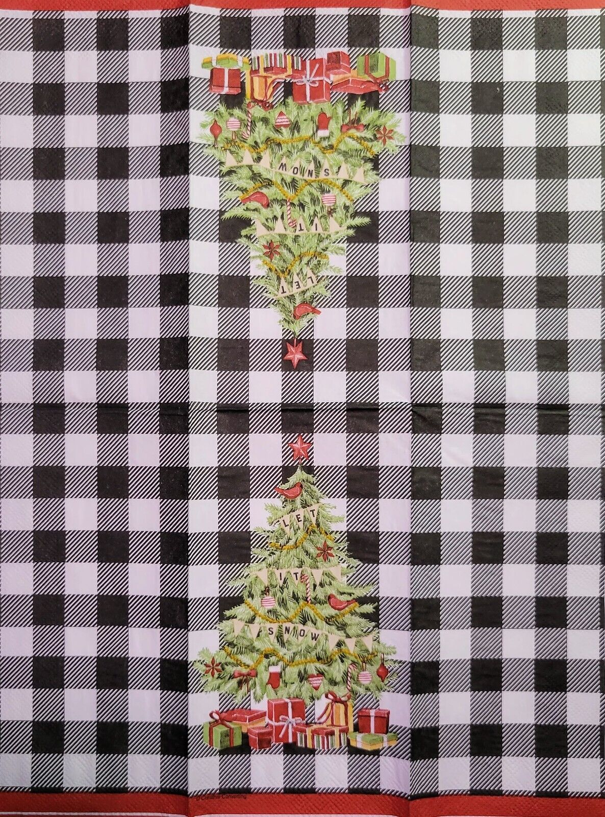 TWO Individual Paper Guest Decoupage Napkins - 2239 Let It Snow Gingham