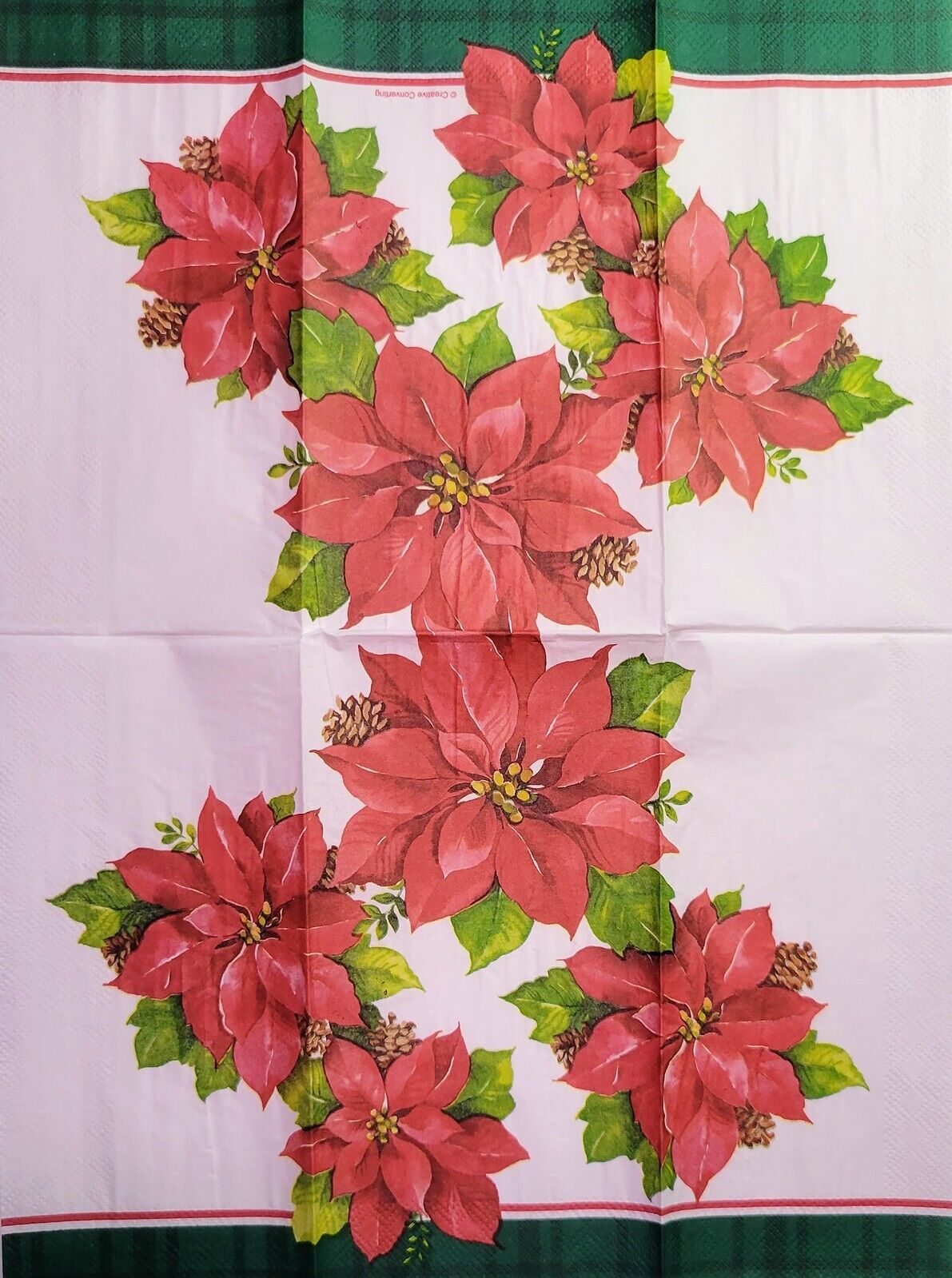 TWO Individual Paper Guest Decoupage Napkins - 2249 Poinsettia Clusters