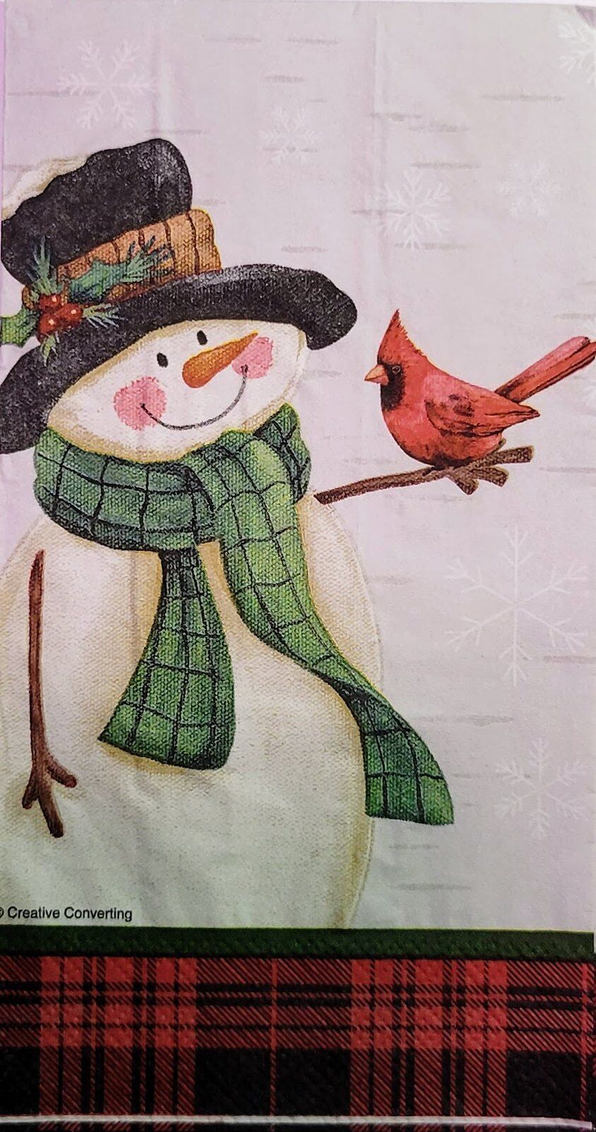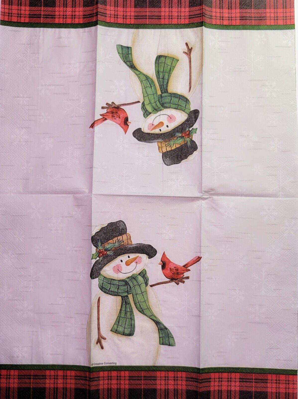 TWO Individual Paper Guest Decoupage Napkins - 2264 Loving Snowman and Cardinal