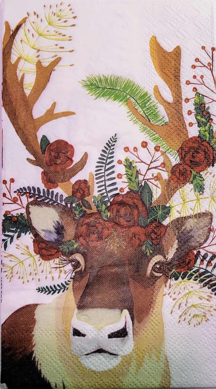 TWO Individual Paper Guest Decoupage Napkins - 2265 Eve the Christmas Reindeer