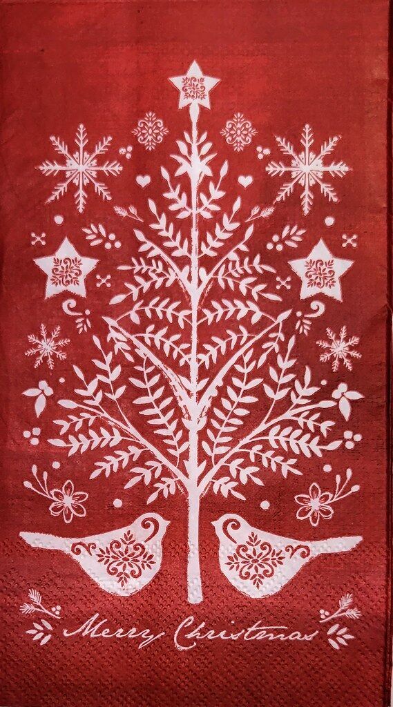 TWO Individual Paper Guest Decoupage Napkins - 2267 Red Folk Merry Christmas
