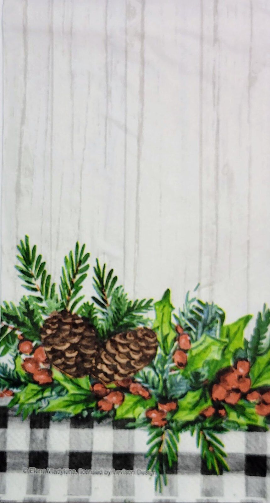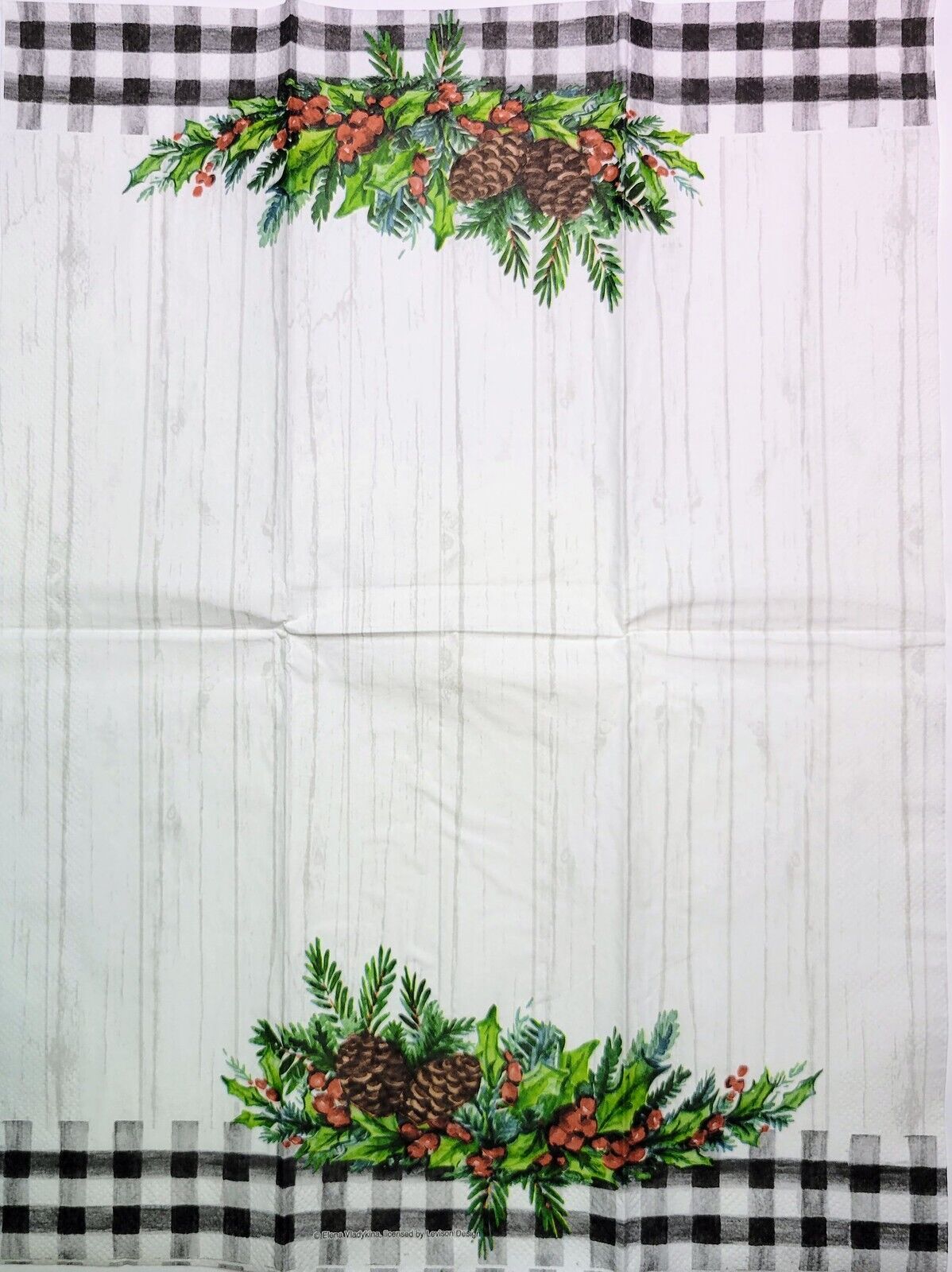 TWO Individual Paper Guest Decoupage Napkins - 2273 Winter Garland on Plaid