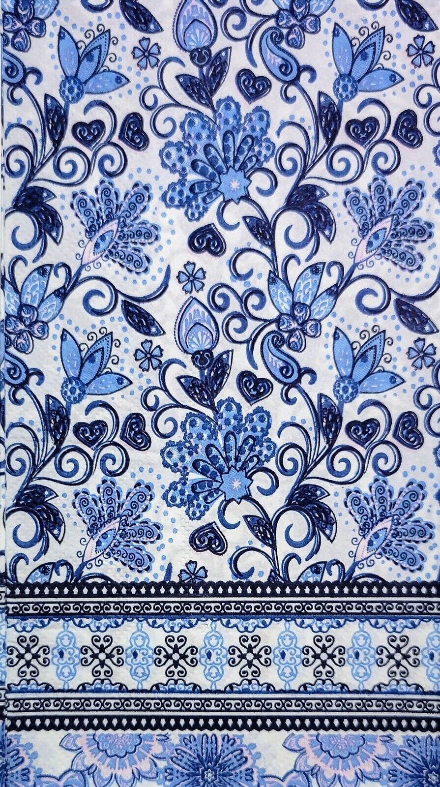 TWO Individual Paper Guest Decoupage Napkins - 2274 Blue Bohemian Floral