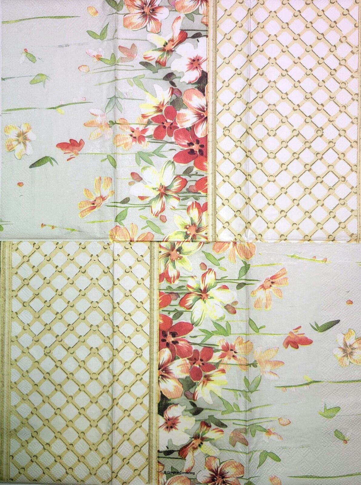 TWO Individual Paper Guest Decoupage Napkins - 2276 Lattice Floral Garden