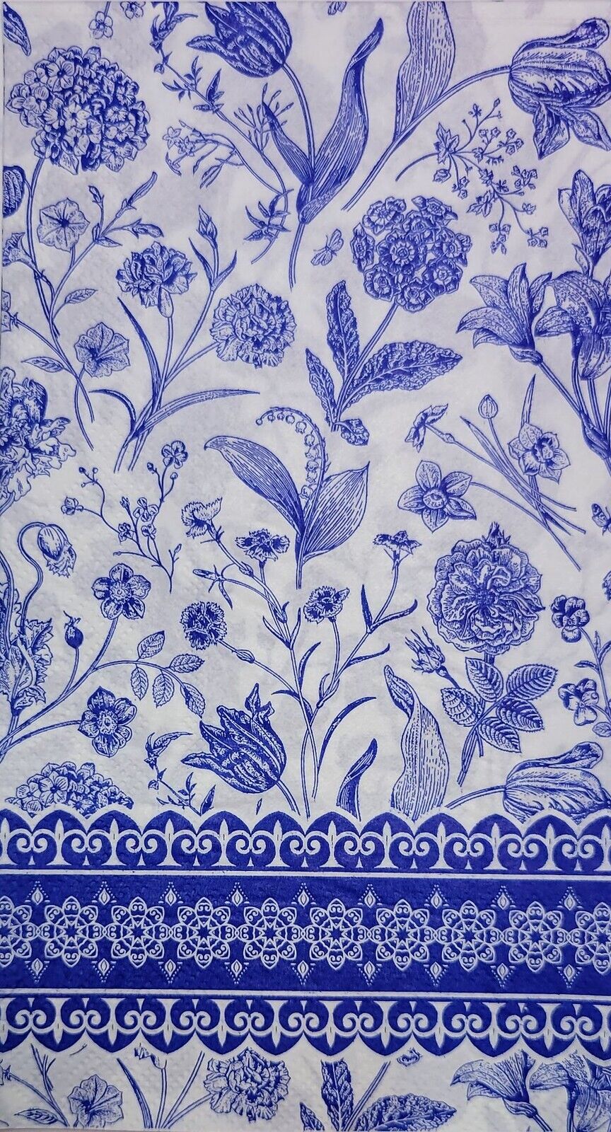 TWO Individual Paper Guest Decoupage Napkins - 2277 Blue Floral Susette