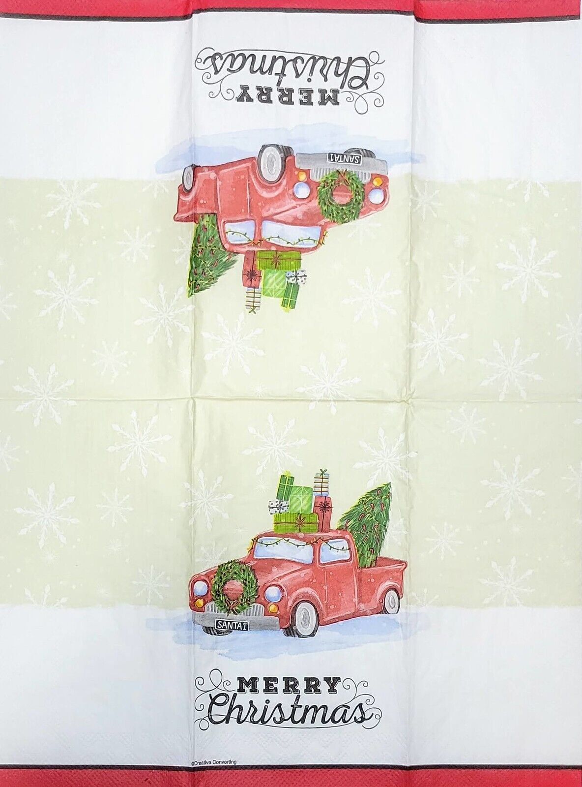 TWO Individual Paper Guest Decoupage Napkins - 2292 Cozy Holiday Truck