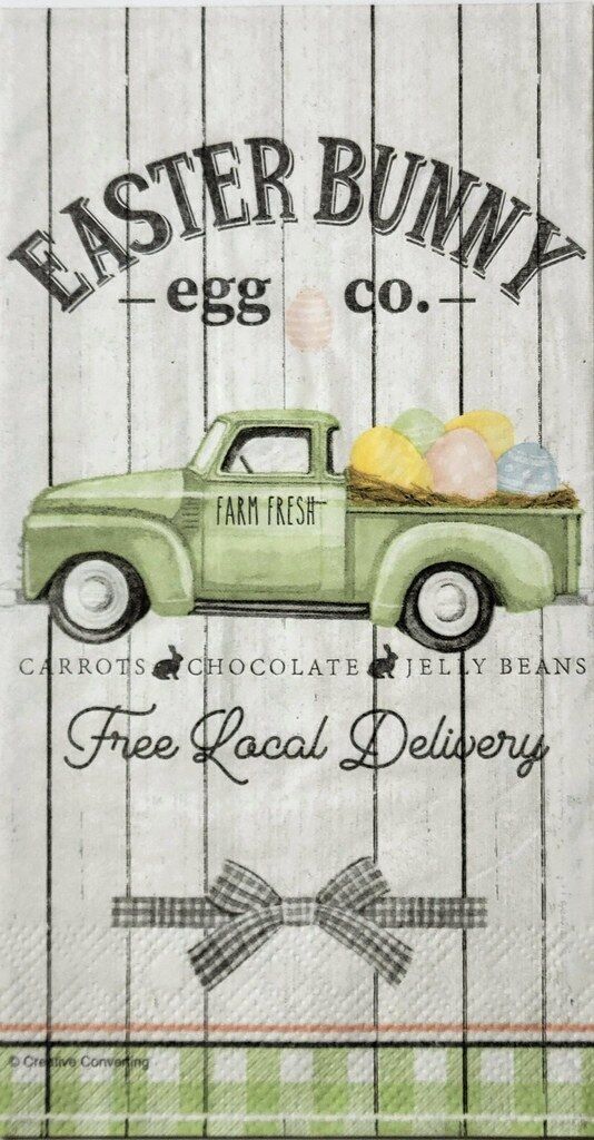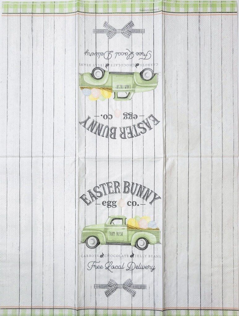 TWO Individual Paper Guest Decoupage Napkins- 2307 Easter Bunny Farm Fresh Truck