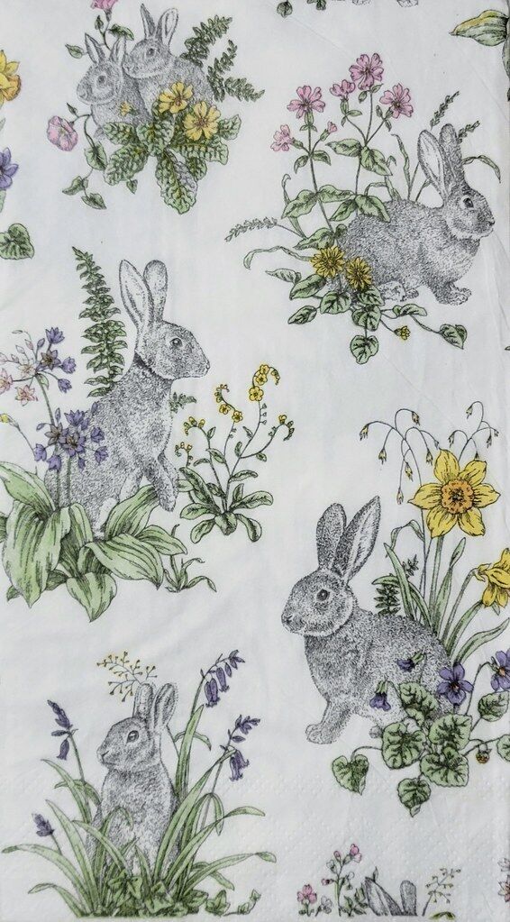 TWO Individual Paper Guest Decoupage Napkins - 2308 Easter Bunnies and Flowers