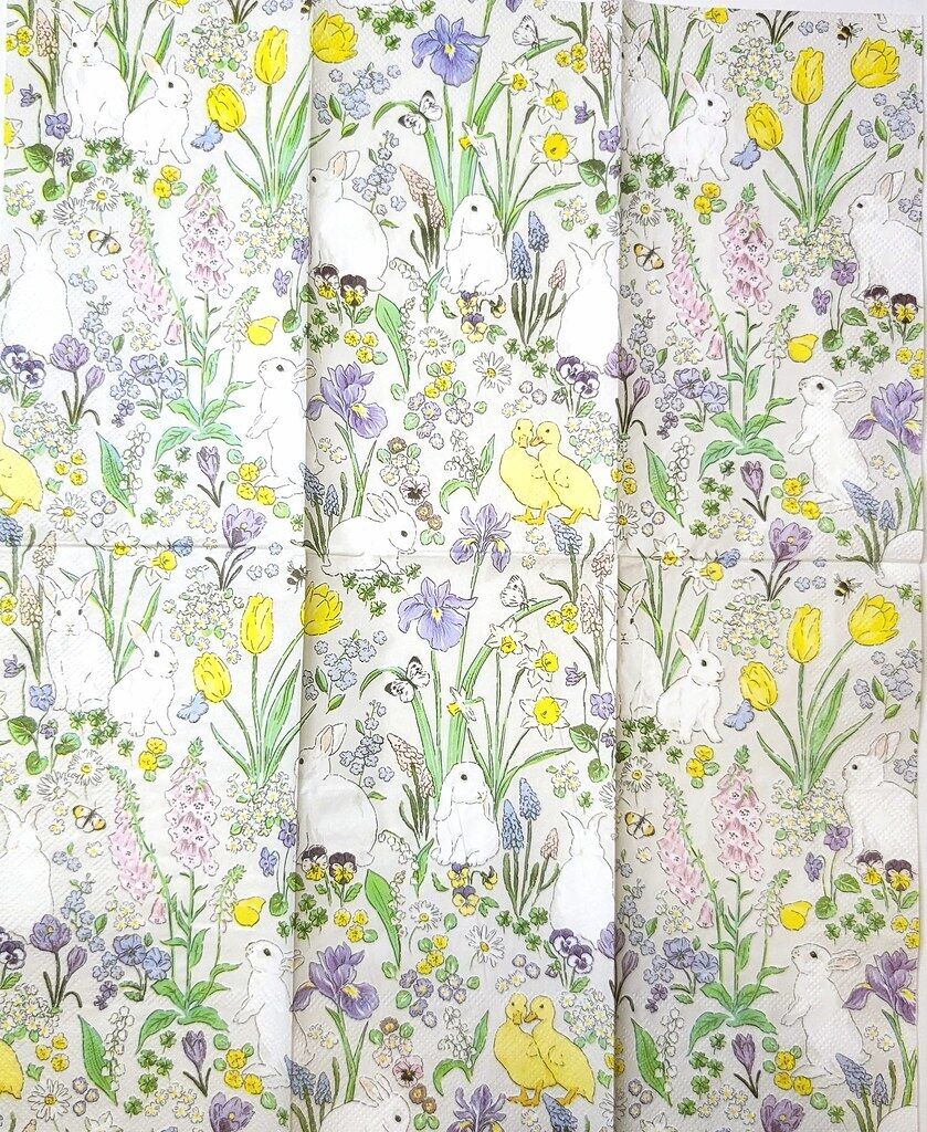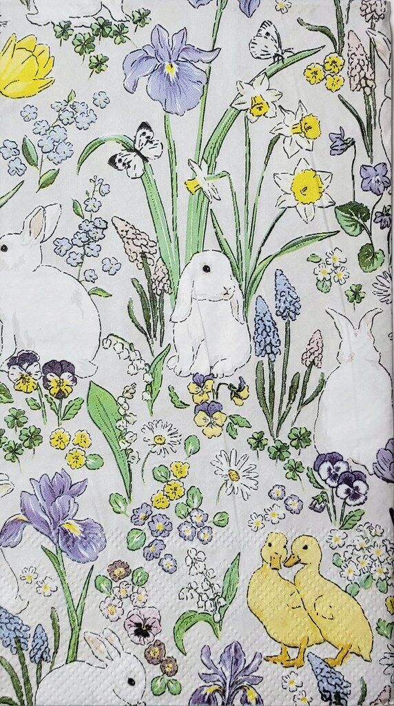 TWO Individual Paper Guest Decoupage Napkins - 2314 Bunnies and Ducks in Garden