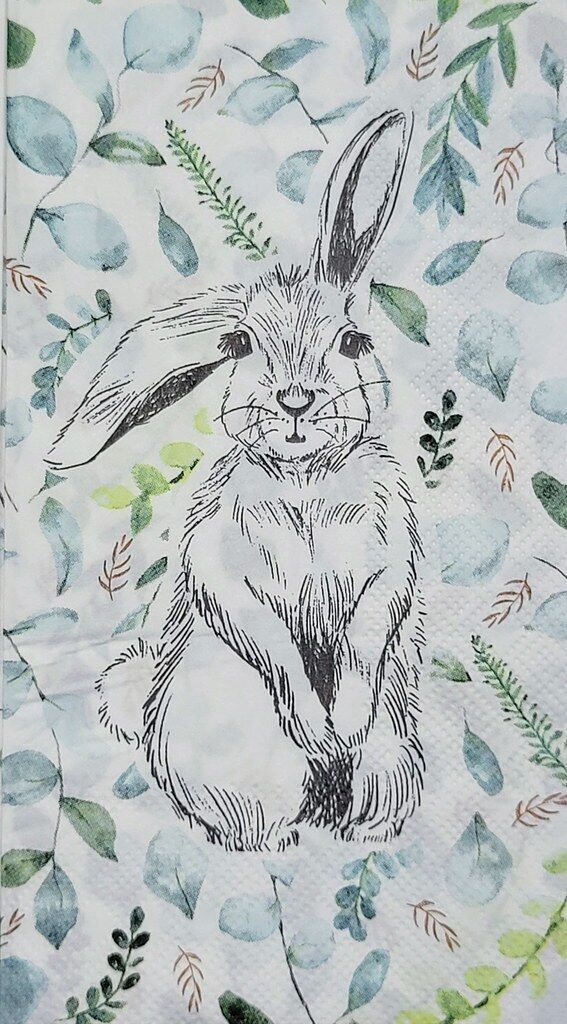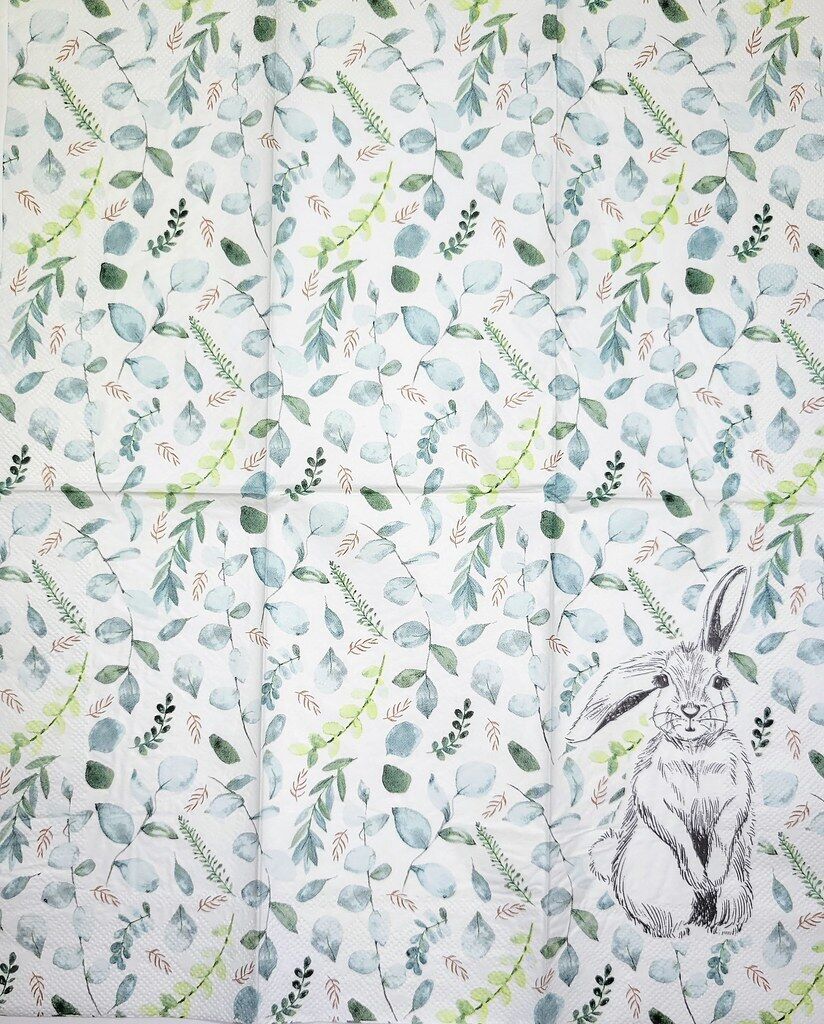 TWO Individual Paper Guest Decoupage Napkins - 2356 Bunny and Green Foliage