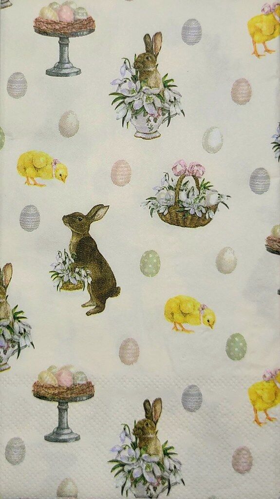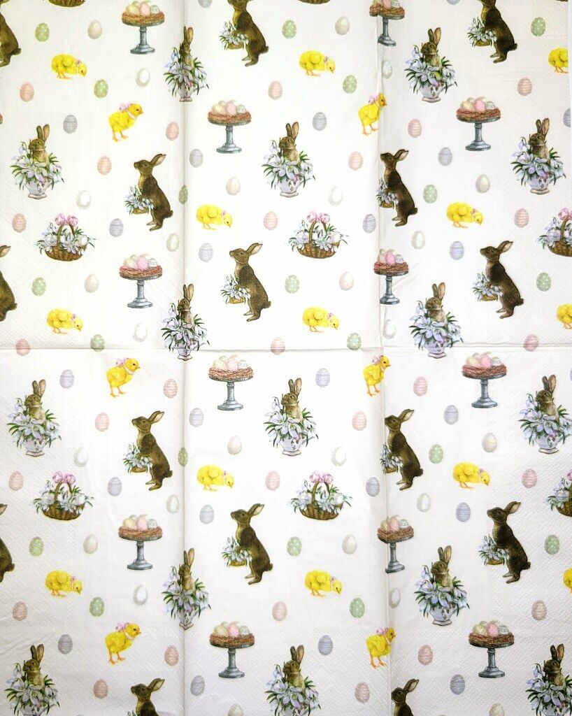 TWO Individual Paper Guest Decoupage Napkins - 2358 Easter Bunnies Chicks & Eggs