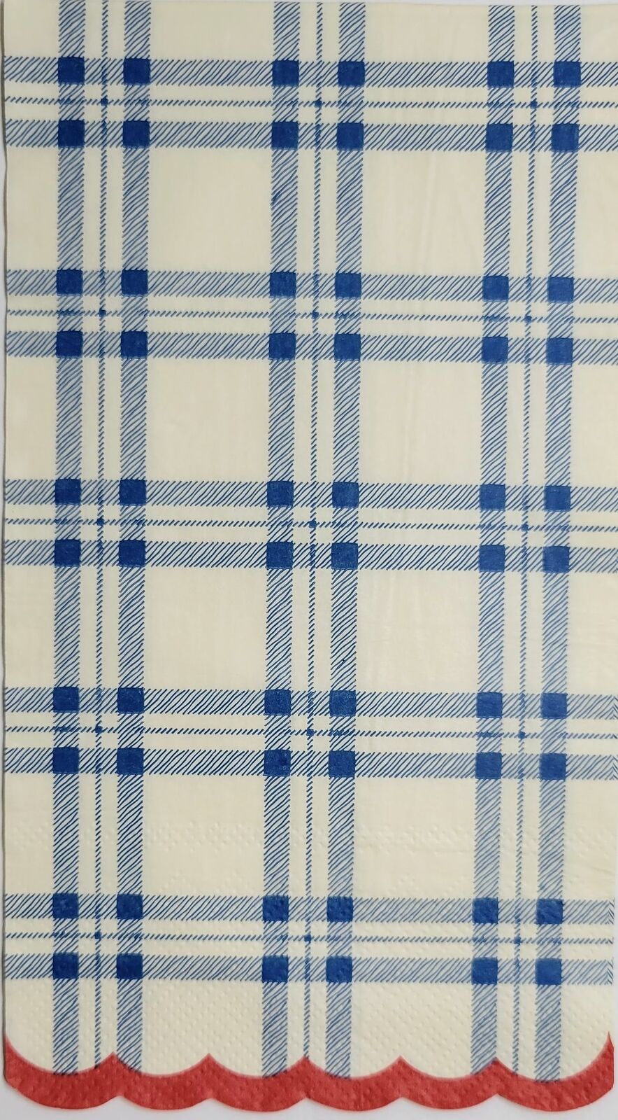 TWO Individual Paper Guest Decoupage Napkins - 2380 Blue Plaid with Red Ruffle