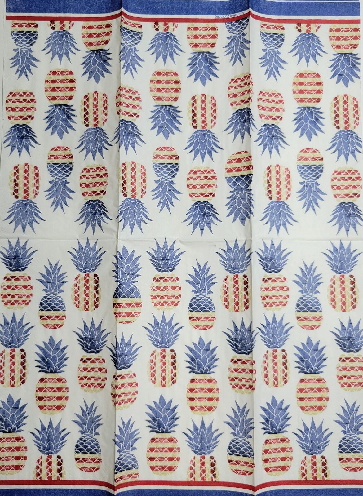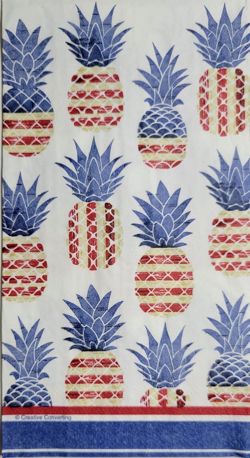 TWO Individual Paper Guest Decoupage Napkins - 2382 Patriotic Pineapples