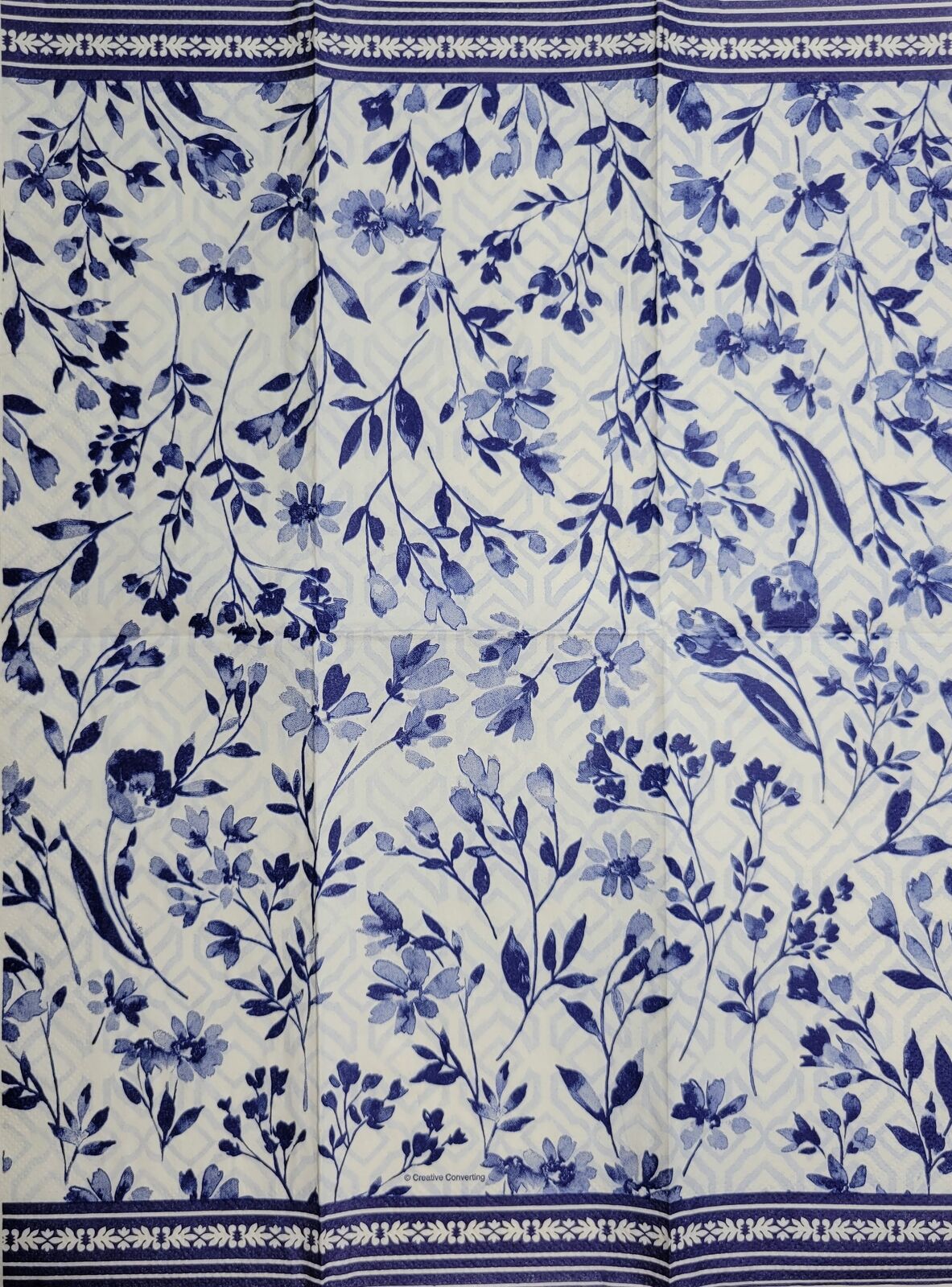 TWO Individual Paper Guest Decoupage Napkins - 2414 Blue Floral Excellence