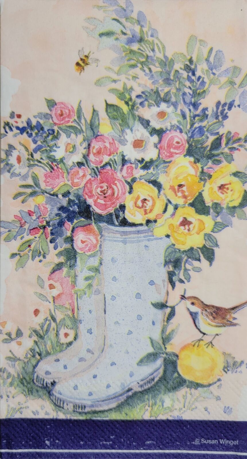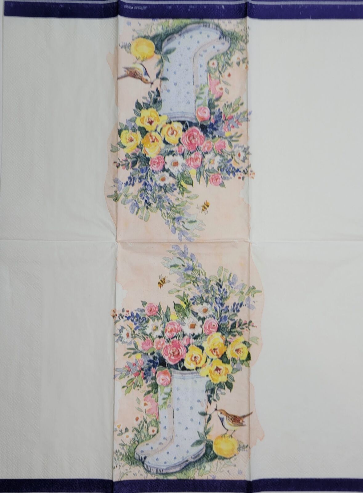 TWO Individual Paper Guest Decoupage Napkins - 2418 Spring Boot Bouquet