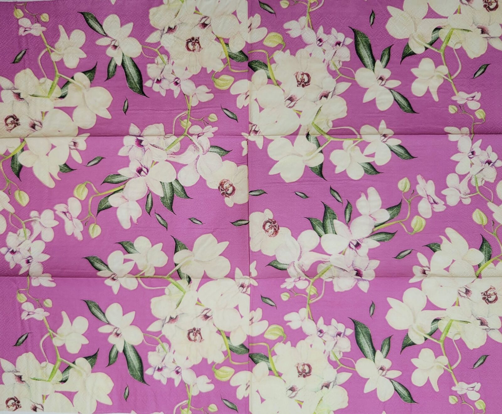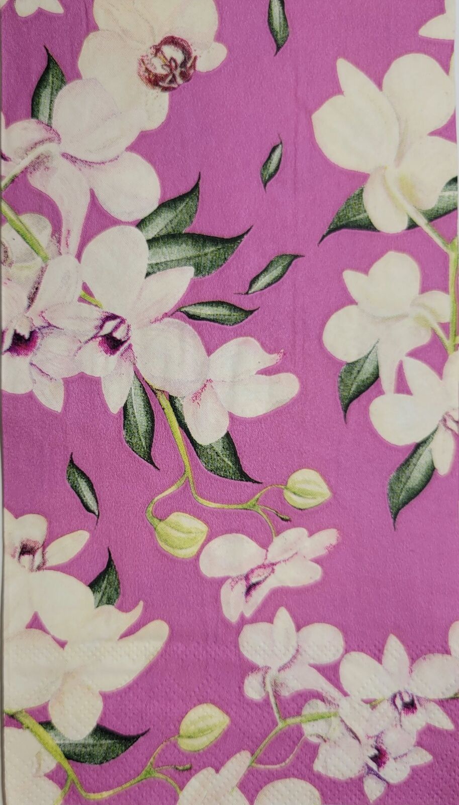 TWO Individual Paper Guest Decoupage Napkins- 2425 White & Purple Floral Romance