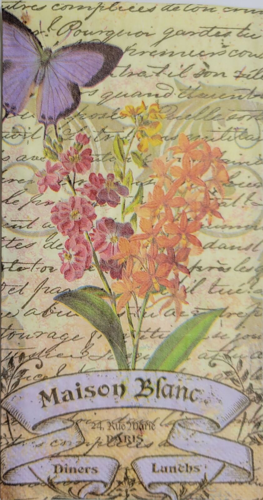 TWO Individual Paper Guest Decoupage Napkins- 2430 Maison Blanc Floral Butterfly