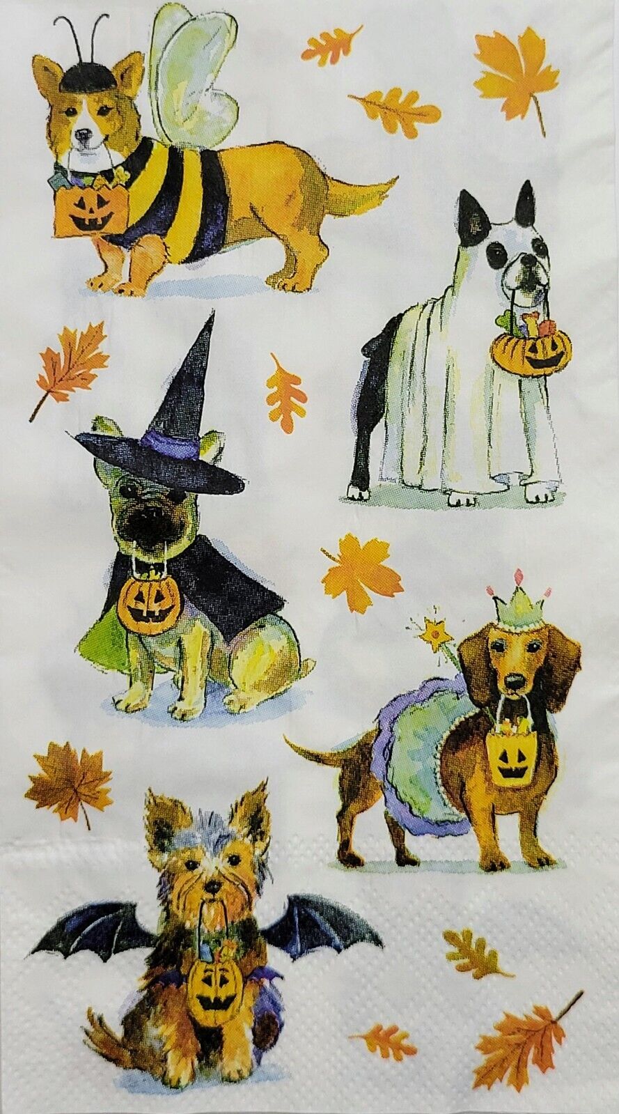 TWO Individual Paper Guest Decoupage Napkins - 2452 Halloween Dog Costumes