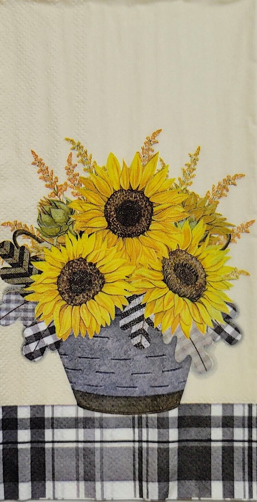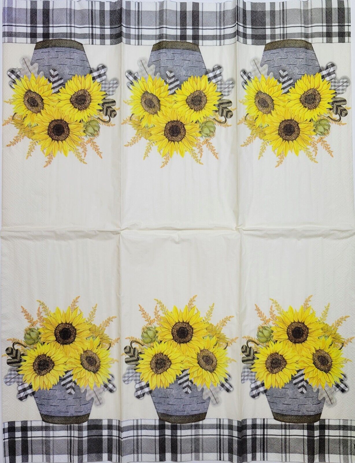 TWO Individual Paper Guest Decoupage Napkins - 2453 Gingham Potted Sunflowers