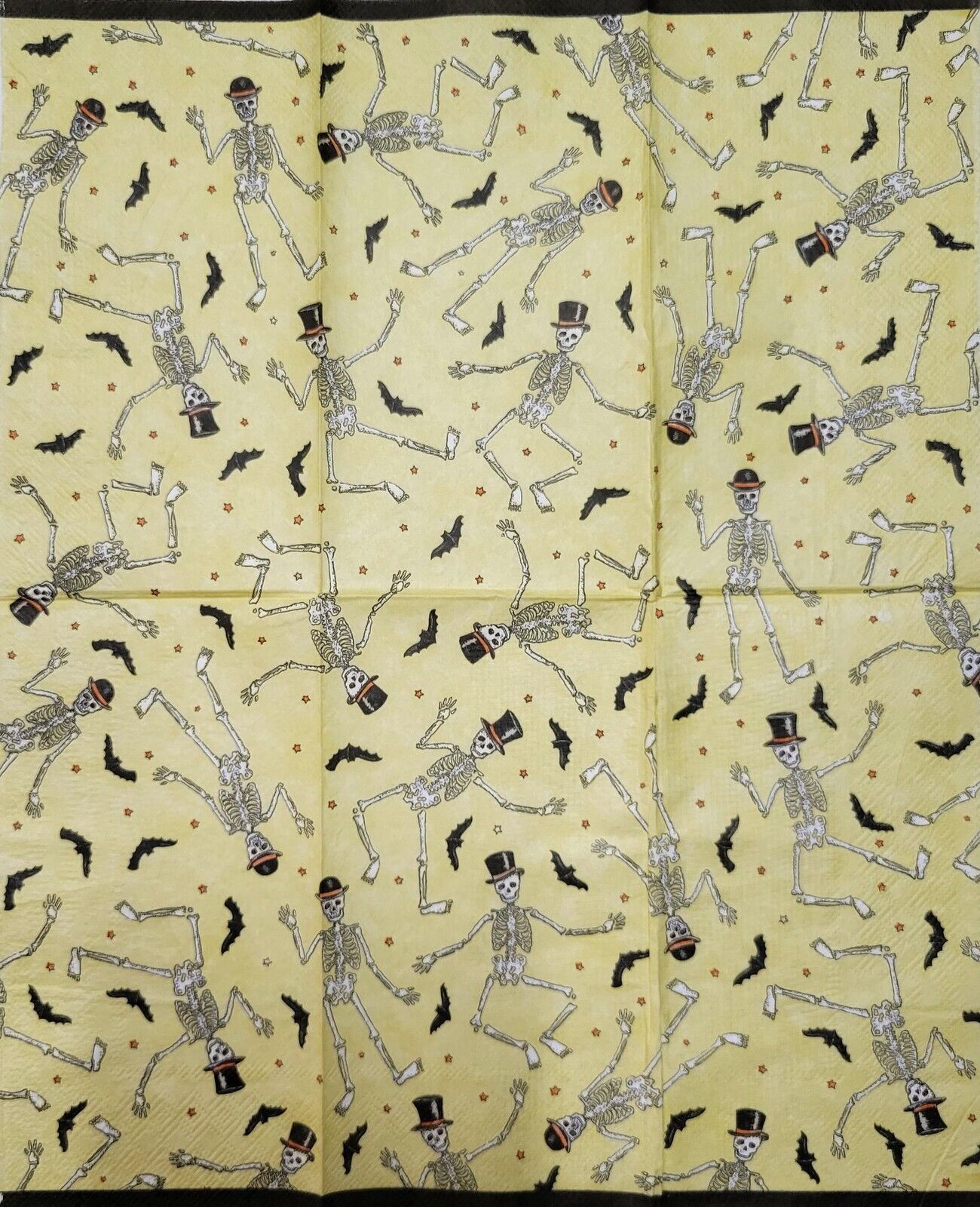 TWO Individual Paper Guest Decoupage Napkins - 2475 Halloween Bones & Bats