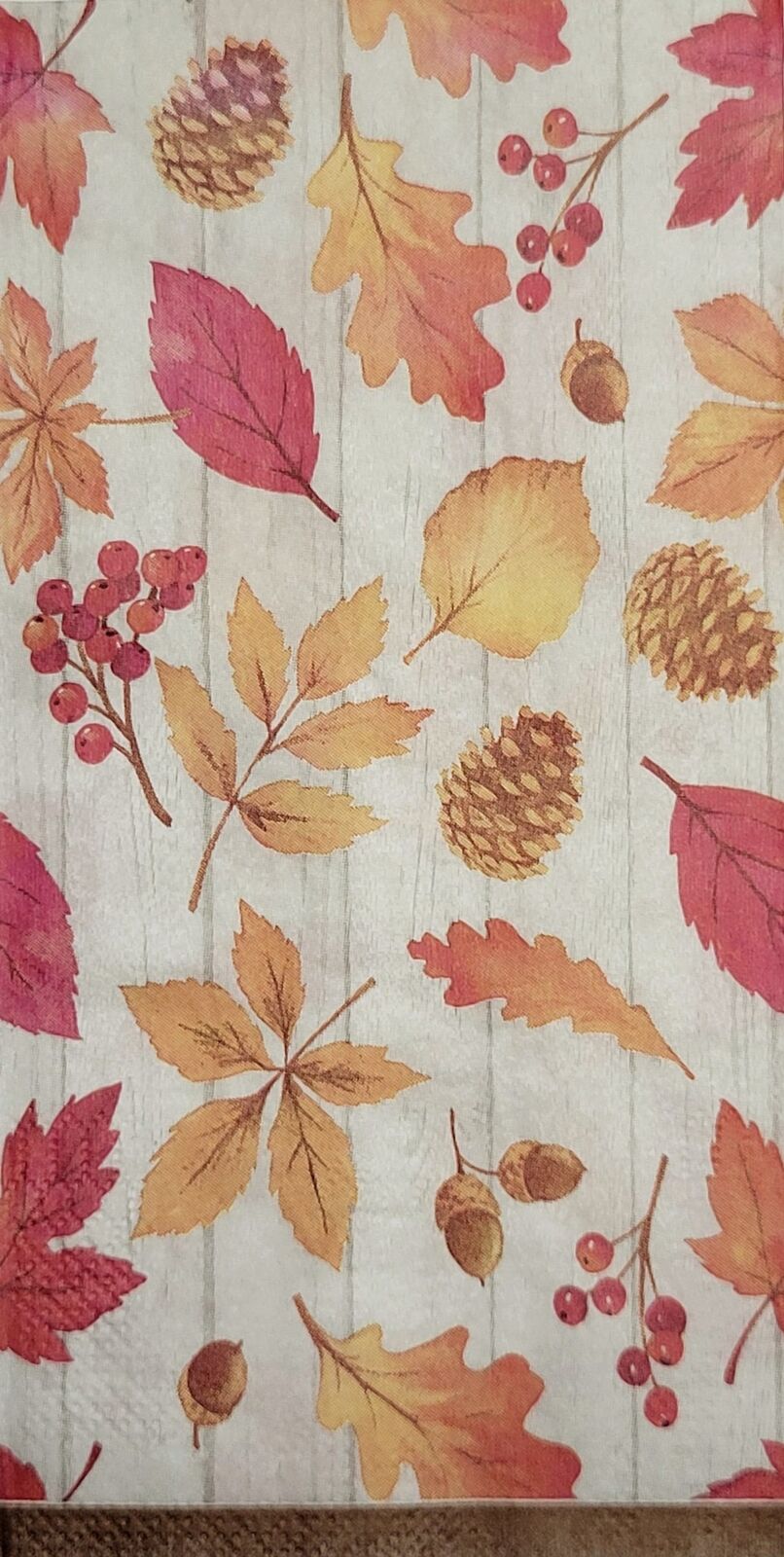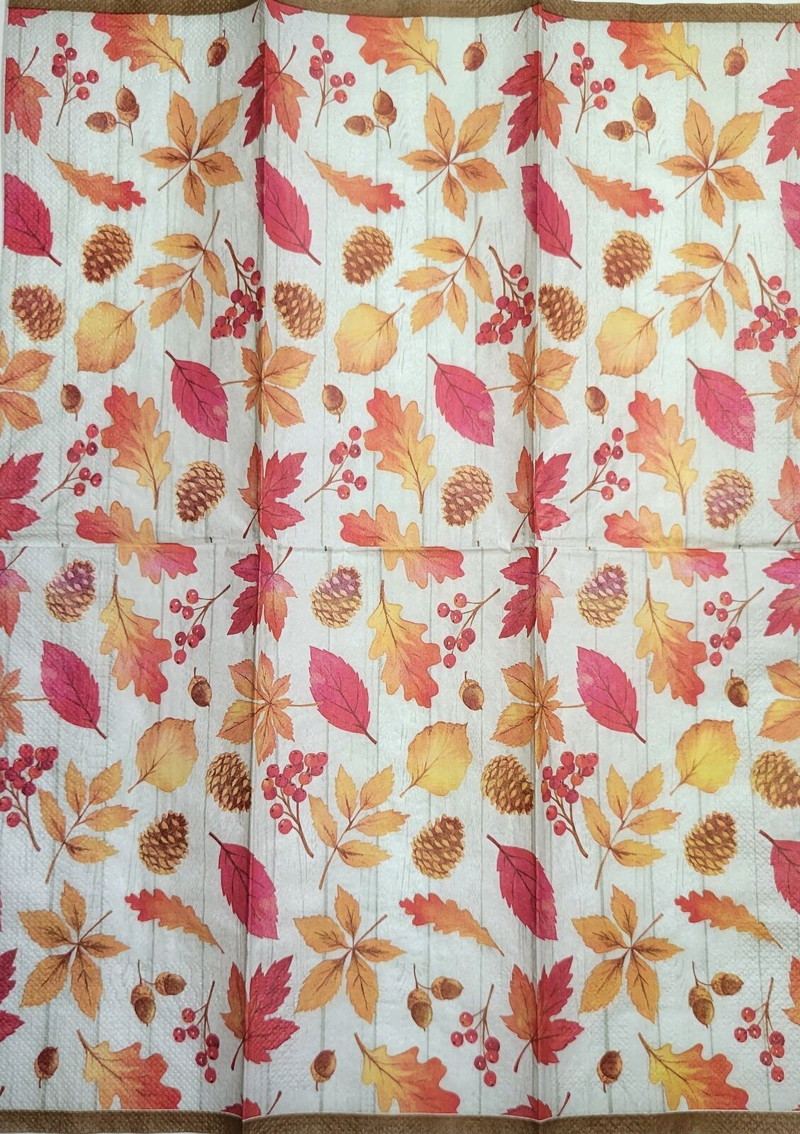 TWO Individual Paper Guest Decoupage Napkins - 2482 Leaves, Acorns, & Pinecones
