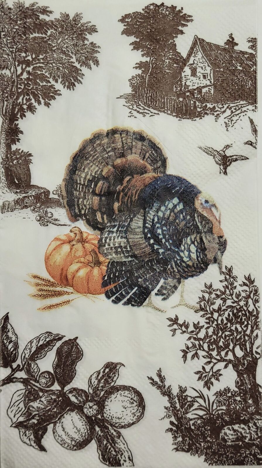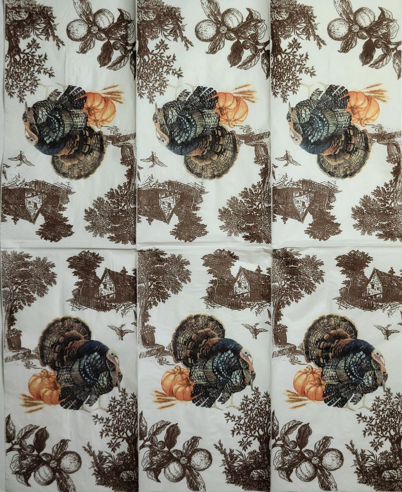 TWO Individual Paper Guest Decoupage Napkins - 2504 Brown Harvest Turkey on Farm