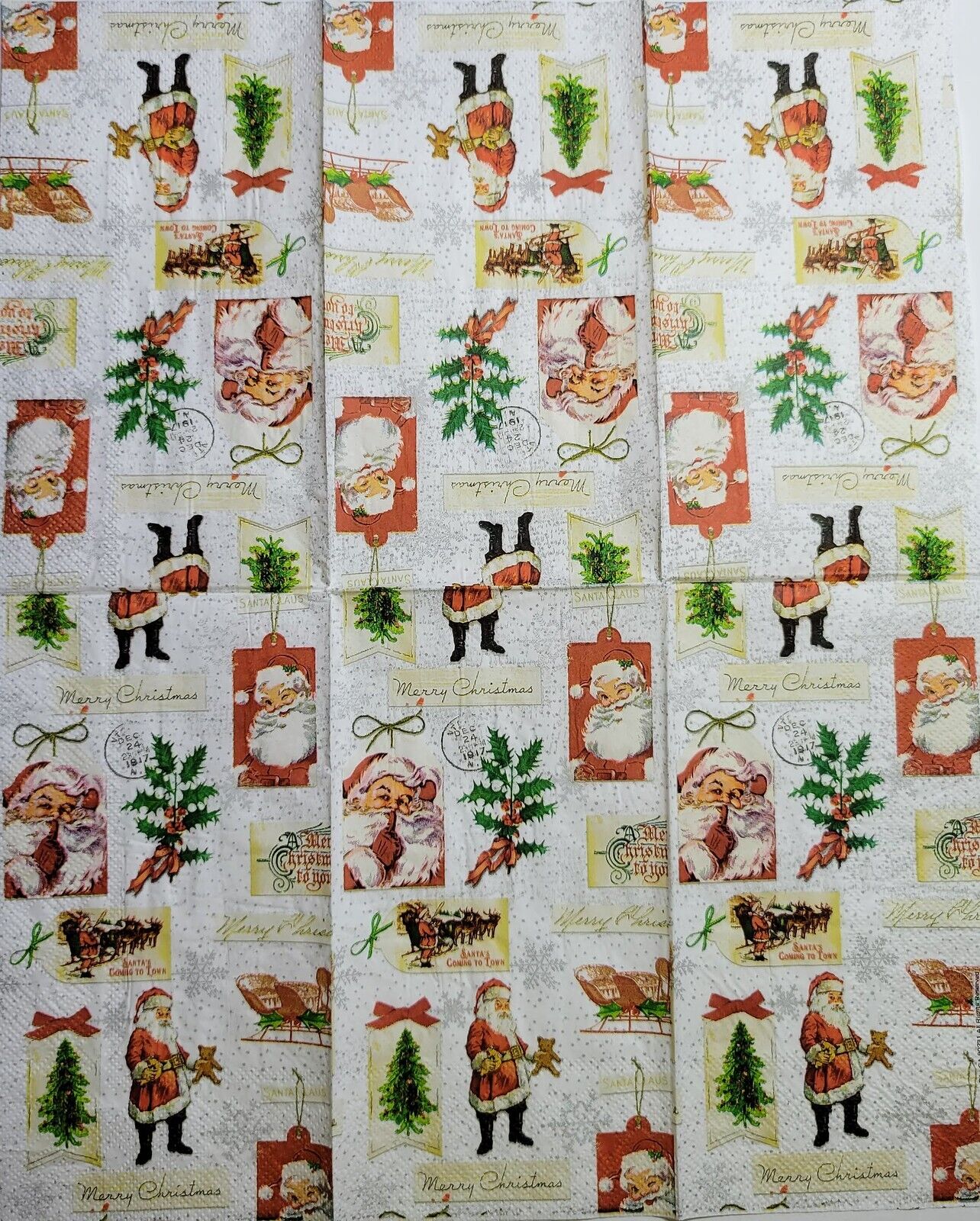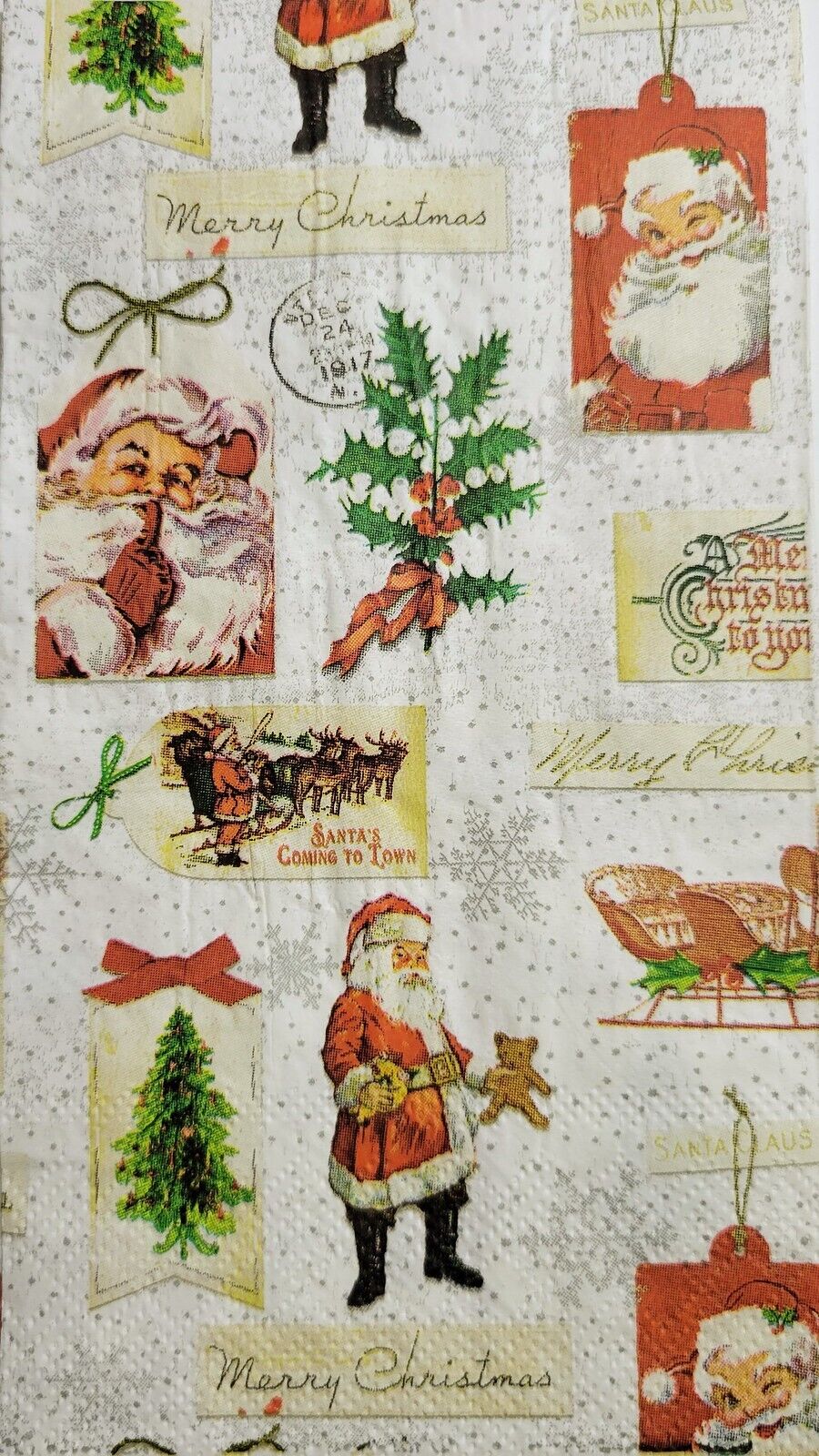 TWO Individual Paper Guest Decoupage Napkins - 2520 Christmas Gift Wrapping Tags