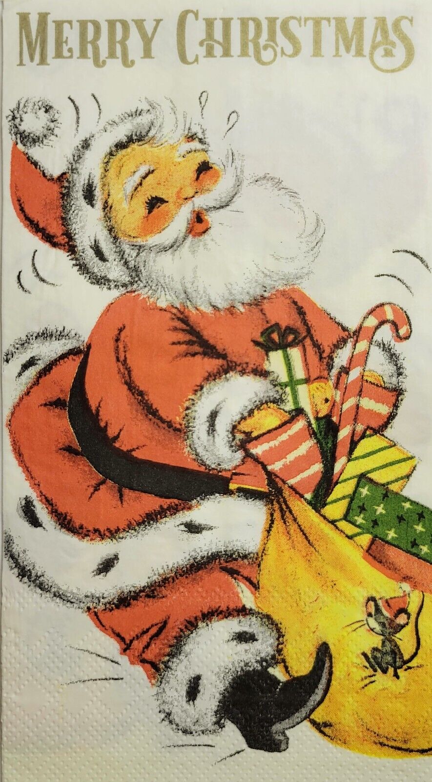 TWO Individual Paper Guest Decoupage Napkins - 2521 Santa's Christmas Delivery