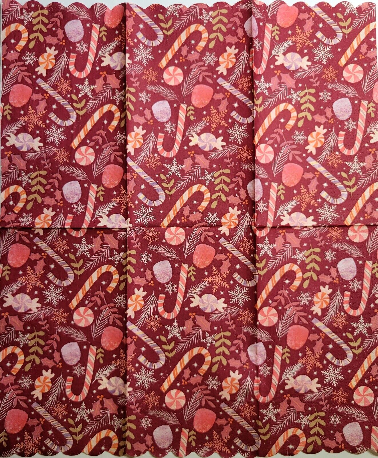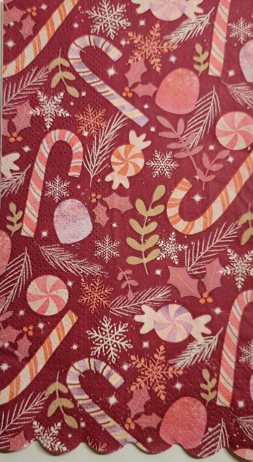 TWO Individual Paper Guest Decoupage Napkins - 2525 Red Candy Canes