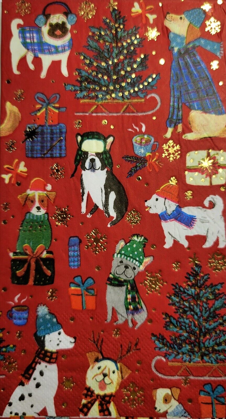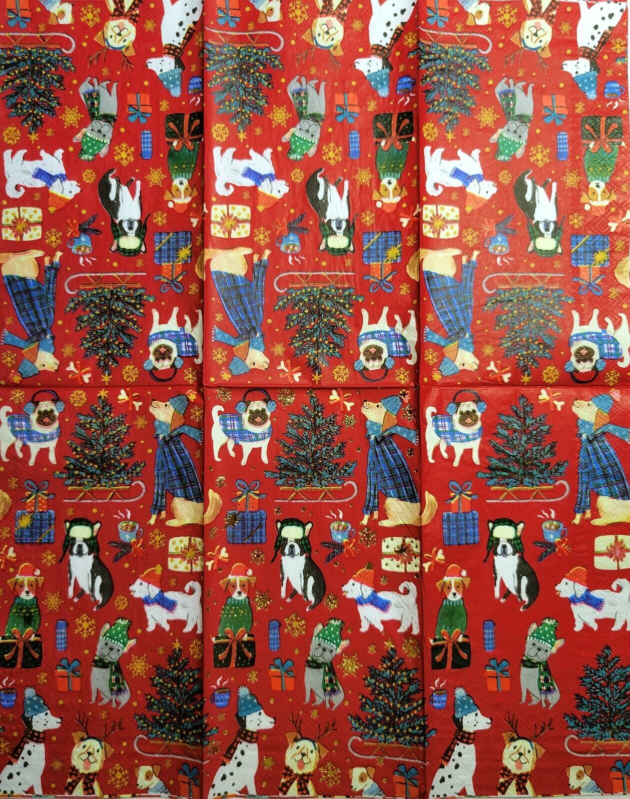 TWO Individual Paper Guest Decoupage Napkins - 2529 Red Christmas Dogs