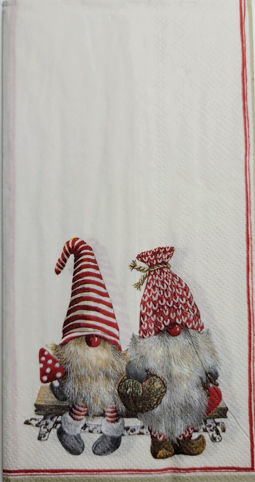 TWO Individual Paper Guest Decoupage Napkins - 2530 Christmas Gnomes