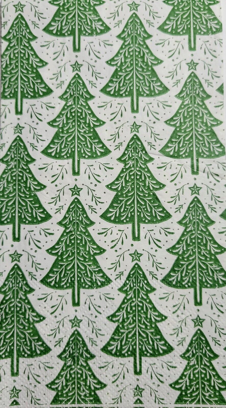 TWO Individual Paper Guest Decoupage Napkins - 2531 Green Christmas Trees