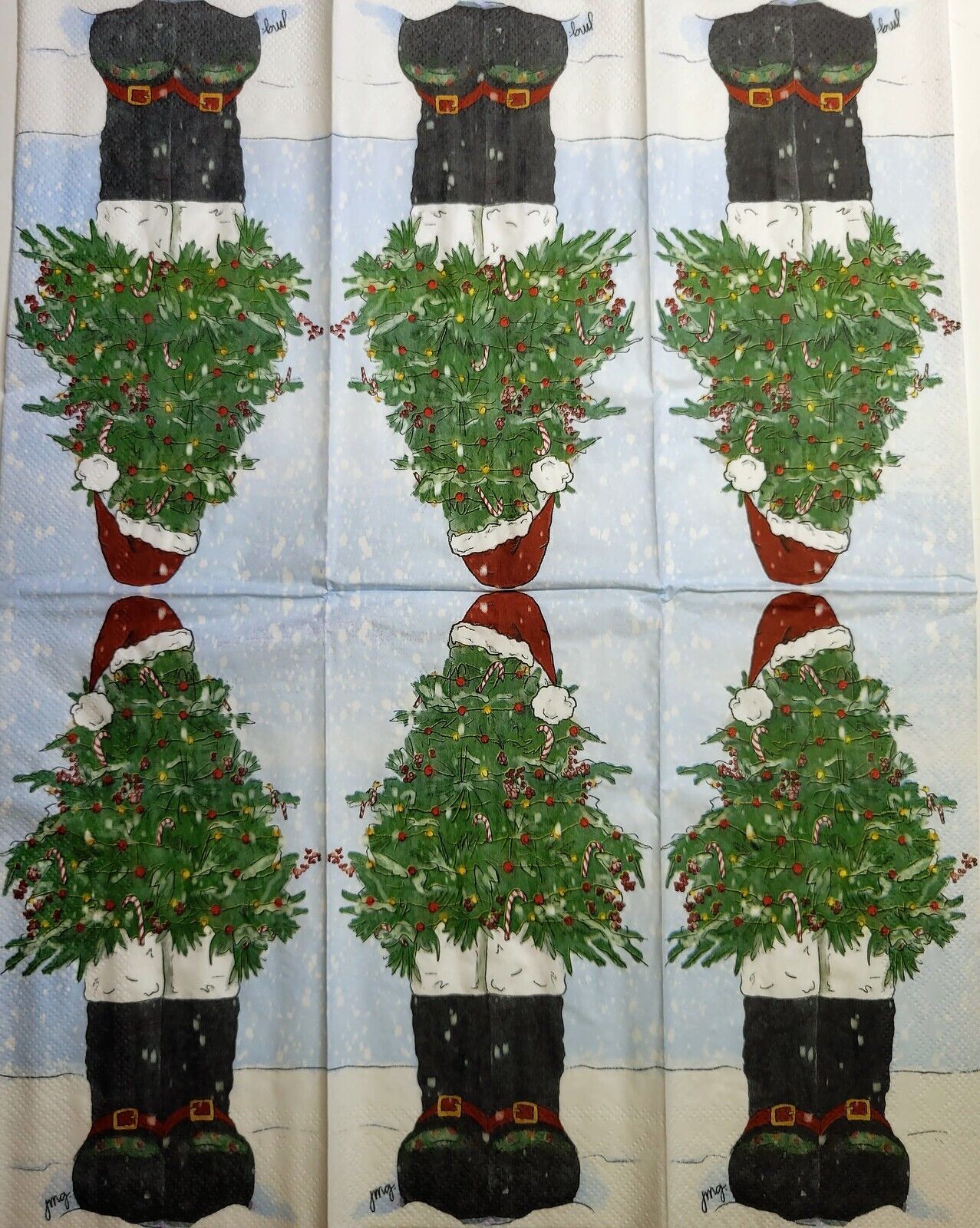 TWO Individual Paper Guest Decoupage Napkins - 2532 Christmas Santa Boots