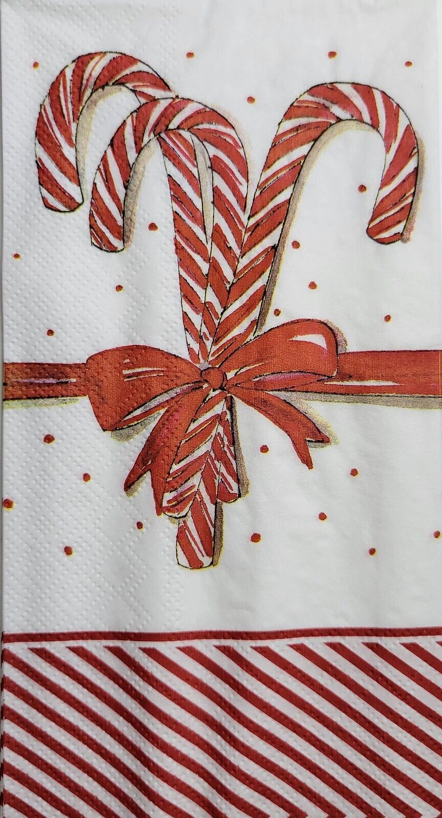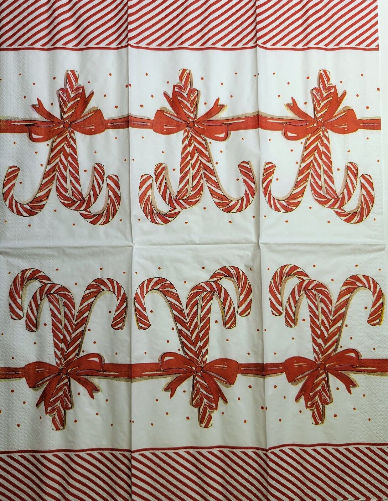 TWO Individual Paper Guest Decoupage Napkins - 2534 Candy Cane Bouquet