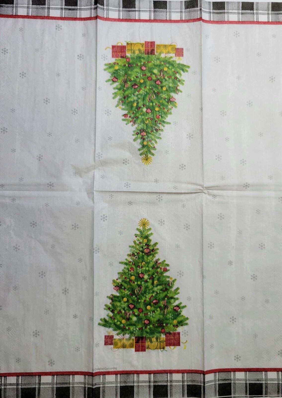 TWO Individual Paper Guest Decoupage Napkins - 2535 Plaid Christmas Tree