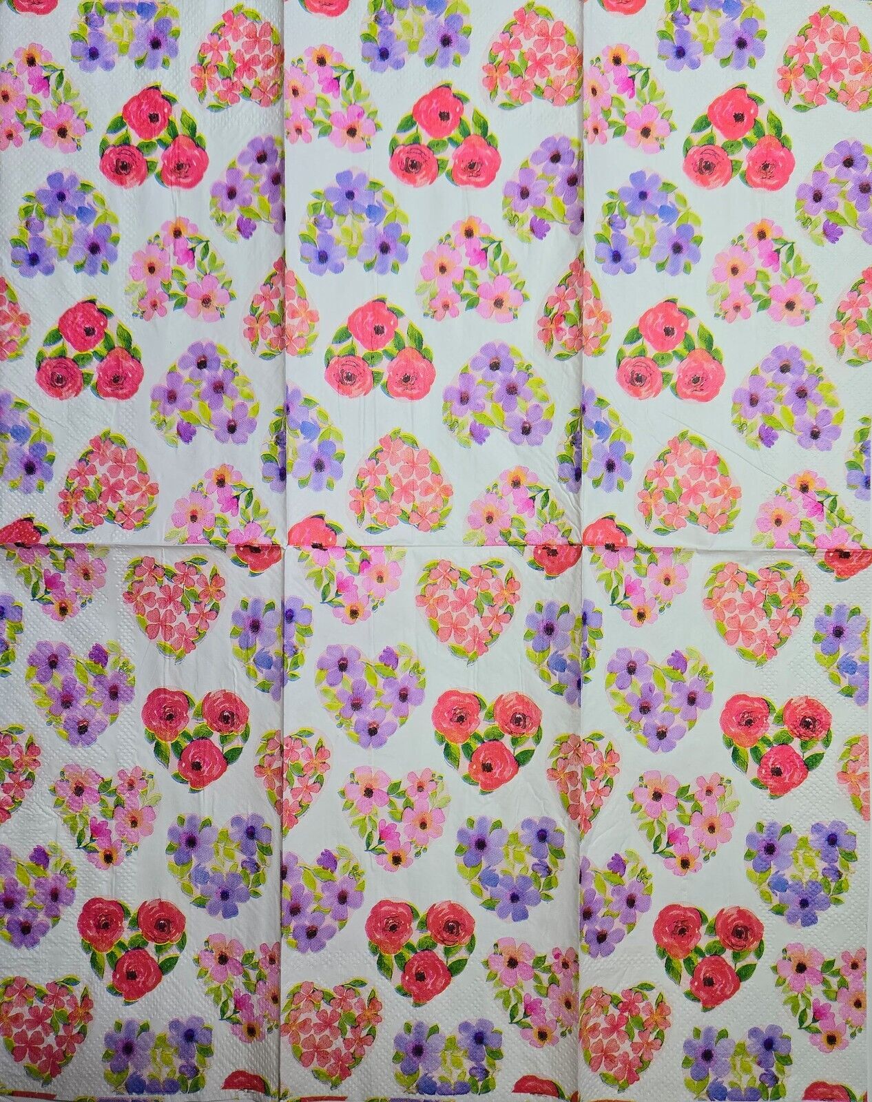 TWO Individual Paper Guest Decoupage Napkins - 2585 Floral Hearts