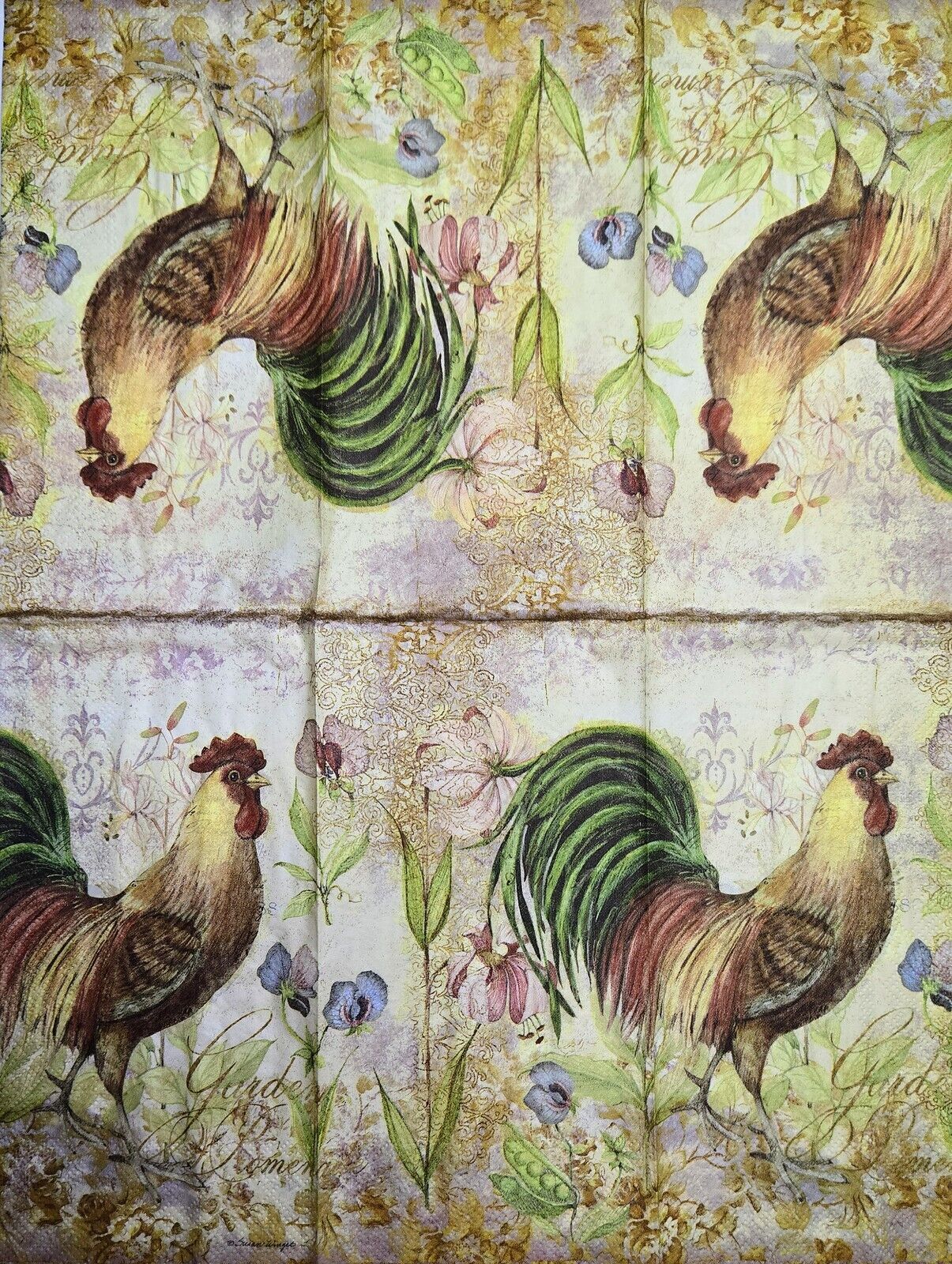 TWO Individual Paper Guest Decoupage Napkins - 2601 Vintage Proud Rooster