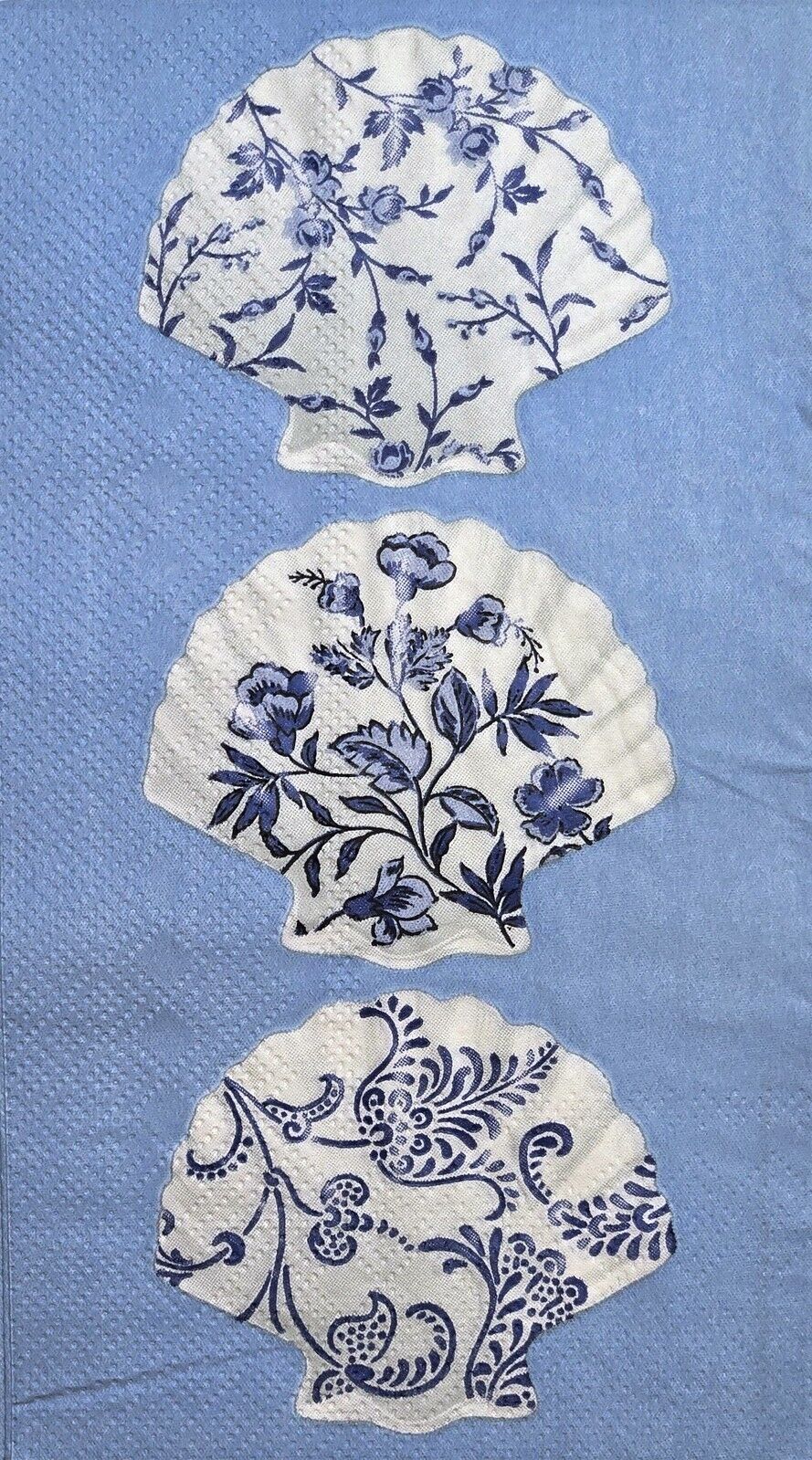 TWO Individual Paper Guest Decoupage Napkins - 2619 Blue Blue Shells