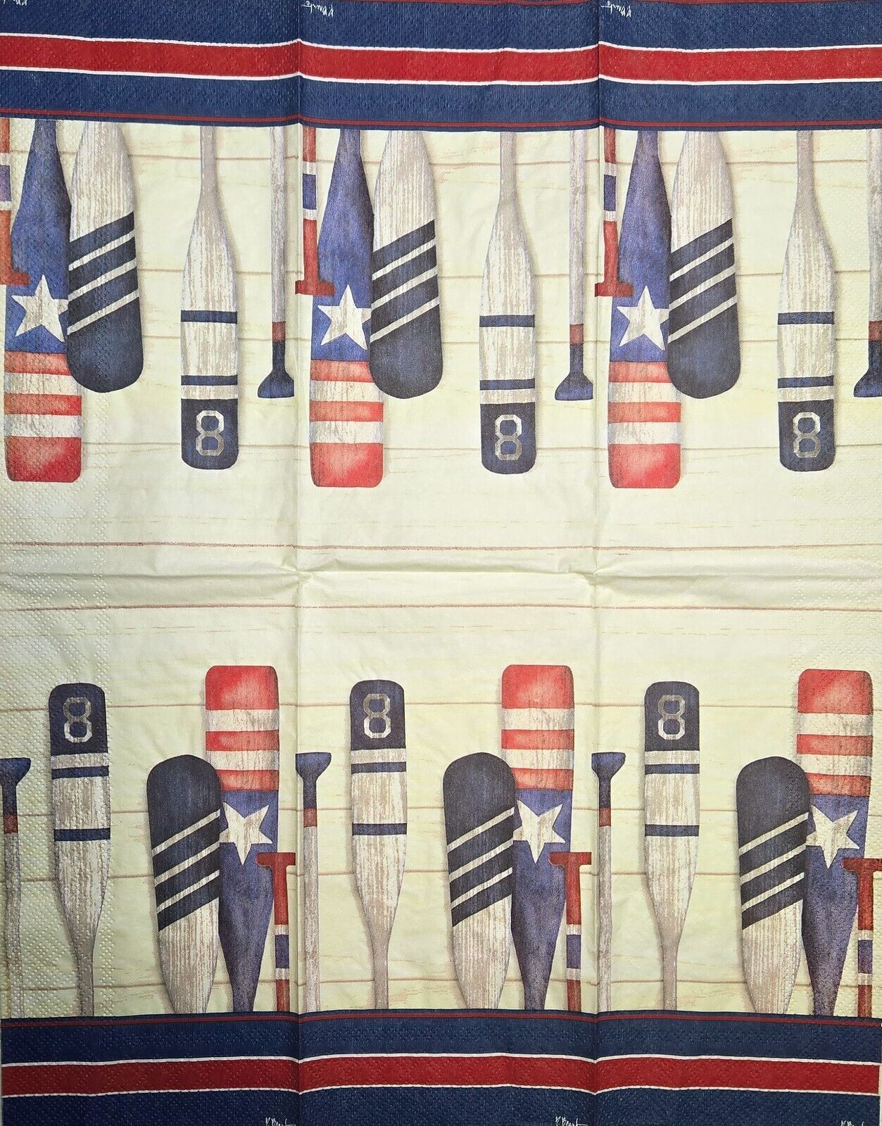 TWO Individual Paper Guest Decoupage Napkins - 2623 Patriotic Port Oars