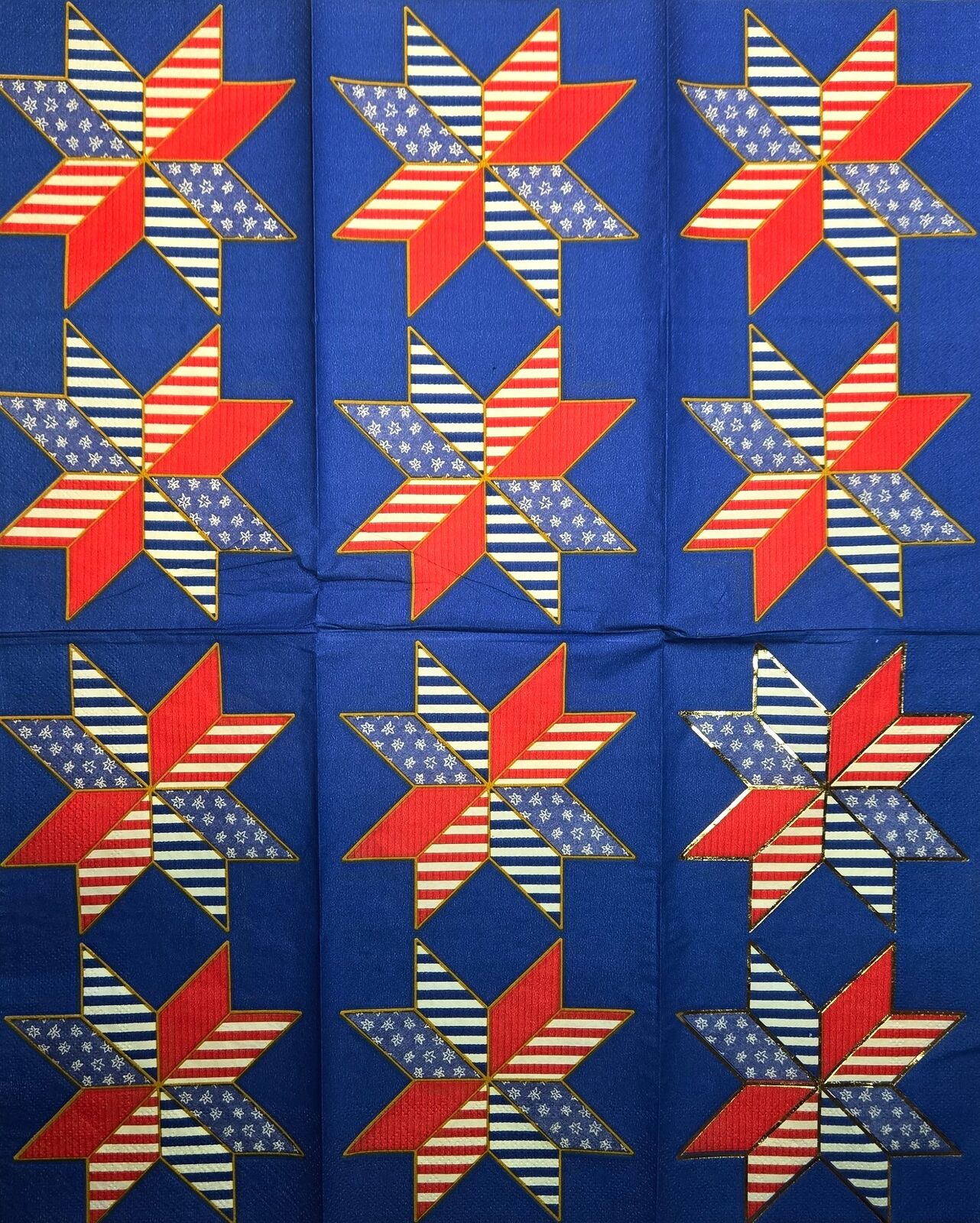 TWO Individual Paper Guest Decoupage Napkins - 2645 Foil Patriotic Pinwheel Star