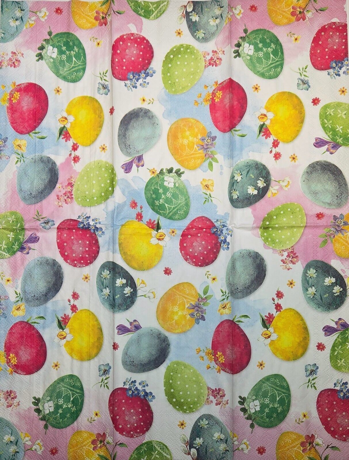 TWO Individual Paper Guest Decoupage Napkins - 2747 Vibrant Colored Easter Eggs