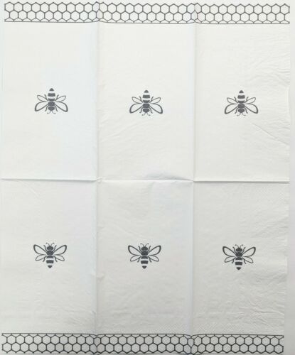TWO Individual Paper Guest 16" x 11.5", 3-ply Decoupage Napkin - Bee and Honeycomb border. Black and white. Bee and Farmhouse lovers.