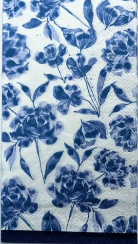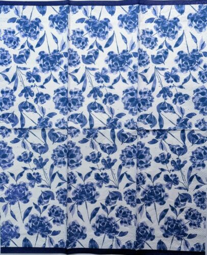 TWO Individual Paper Guest 16" x 11.5", 3-ply Decoupage Napkin - Blue Floral Garden