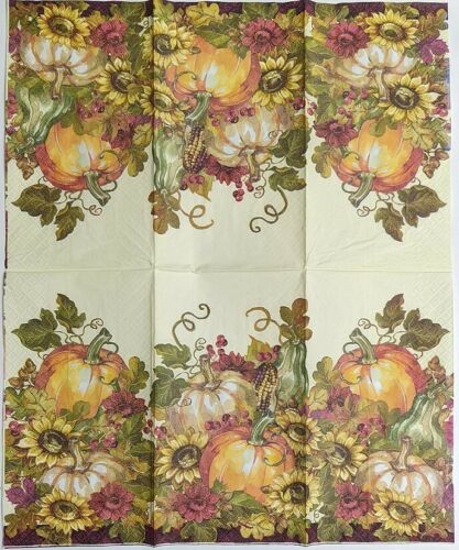 TWO Individual Paper Guest 16" x 11.5", 2-ply Decoupage Napkin - Burgundy Harvest