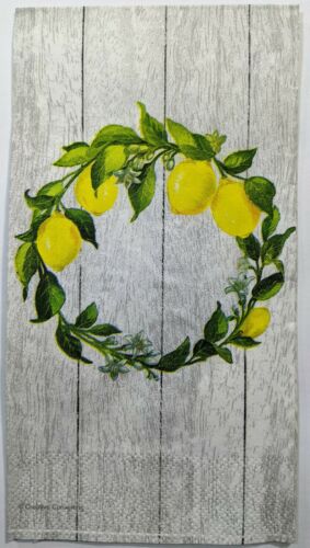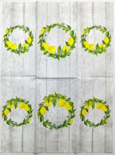 TWO Individual Paper Guest Decoupage Napkins-Citrus Wreath Lemons Wood Back 1088