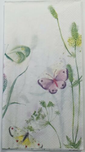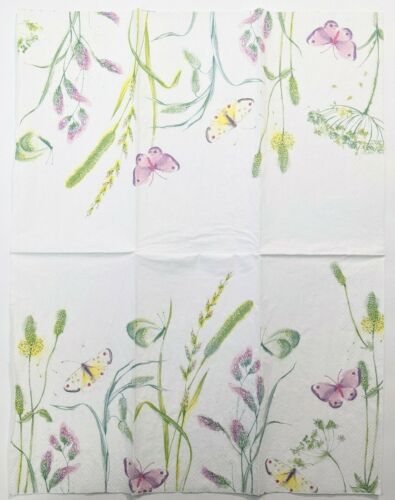 TWO Individual Paper Guest 16" x 11.5", 3-ply Decoupage Napkin - Colorful Butterflies. Spring is in the air! A lovely panoramic.