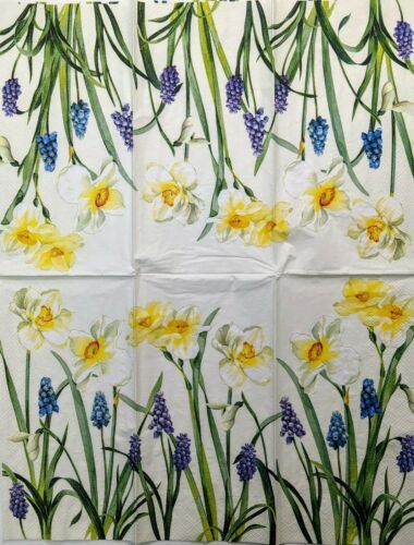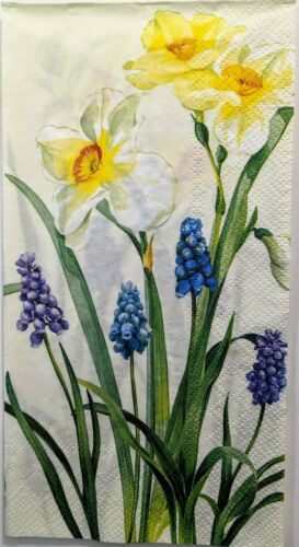 TWO Individual Paper Guest 16" x 11.5", 3-ply Decoupage Napkin - Daffodil spring flowers.