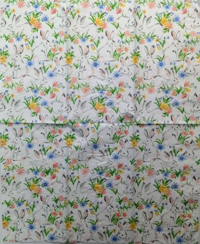 TWO Individual Paper Guest Decoupage Napkins - Easter Bunnies Flower Patch 1220
