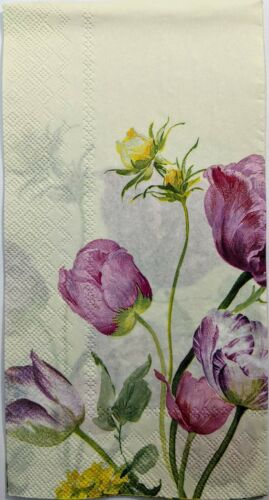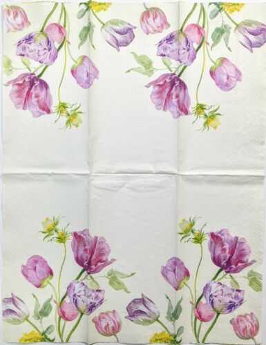 TWO Individual Paper Guest 16" x 11.5", 3-ply Decoupage Napkin - Helen Cream Tulips