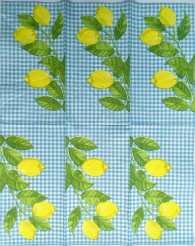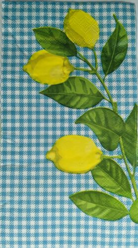 TWO Individual Paper Guest 16" x 11.5", 3-ply Decoupage Napkin - Lemon On Blue Check